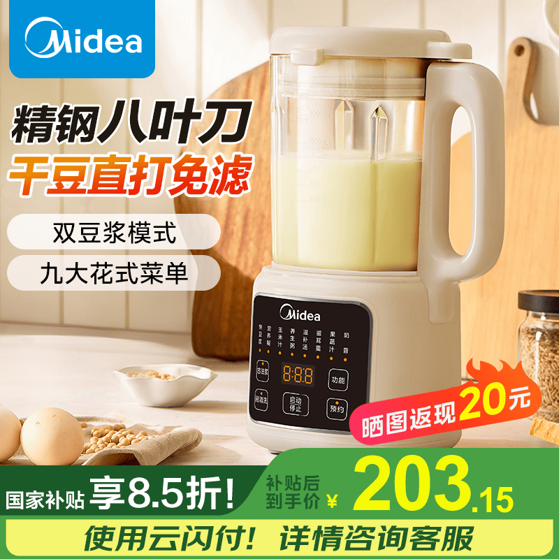 美的豆浆机DJ12B - B40P70仅需144元包邮