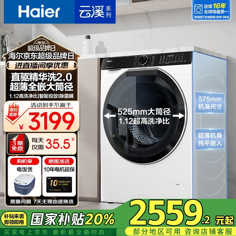 海尔376滚筒洗衣机,原价5999现2559.2
