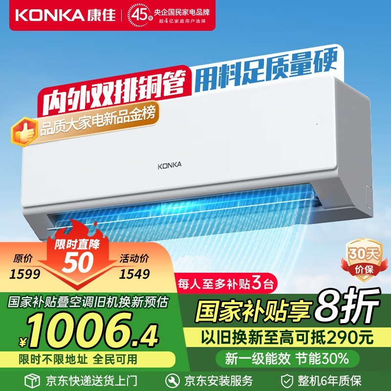 康佳1匹空调京东促销到手仅1006元