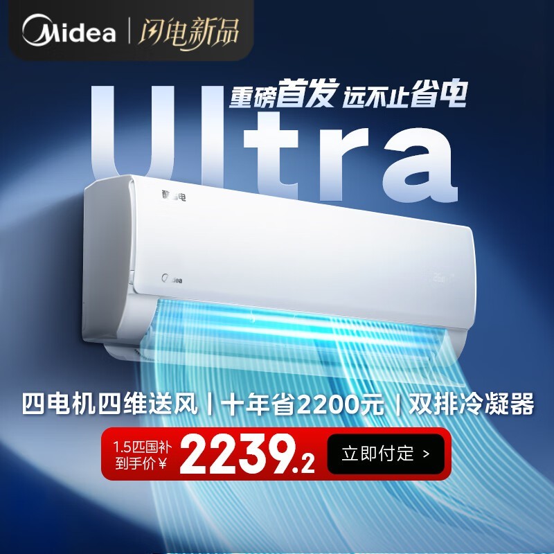 美的大1匹壁挂式空调KFR-35GW酷省电低至2038元