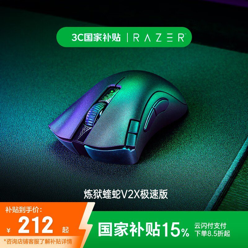 雷蛇炼狱蝰蛇V2 X极速版双模无线鼠标低至172元