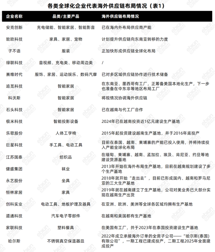 在此,亿邦动力盘点总结了近20家各类型、各品类头部出海企业布局海外供应链的情况,以供广大读者参考。