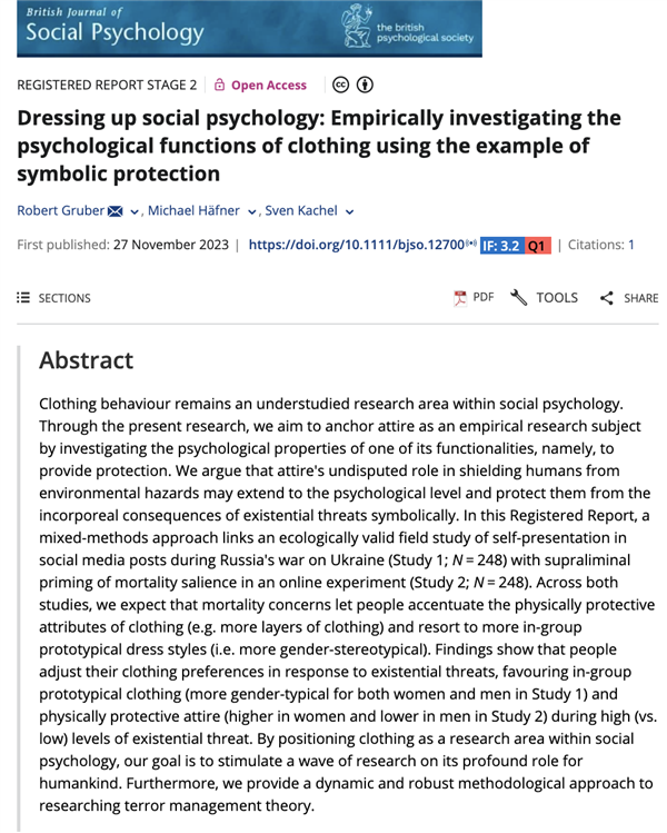 在2023年发布的《装扮与社会心理学:以象征性保护为例,实证研究服装的心理功能》论文中,作者通过调查俄乌冲突全面爆发后英国、德国和波兰的社会着装行为,服装趋势与社会心理的相关性:
