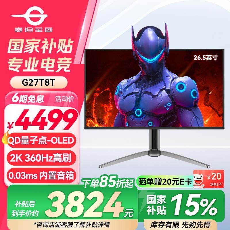 泰坦军团G27T8T显示器京东优惠低至3824元