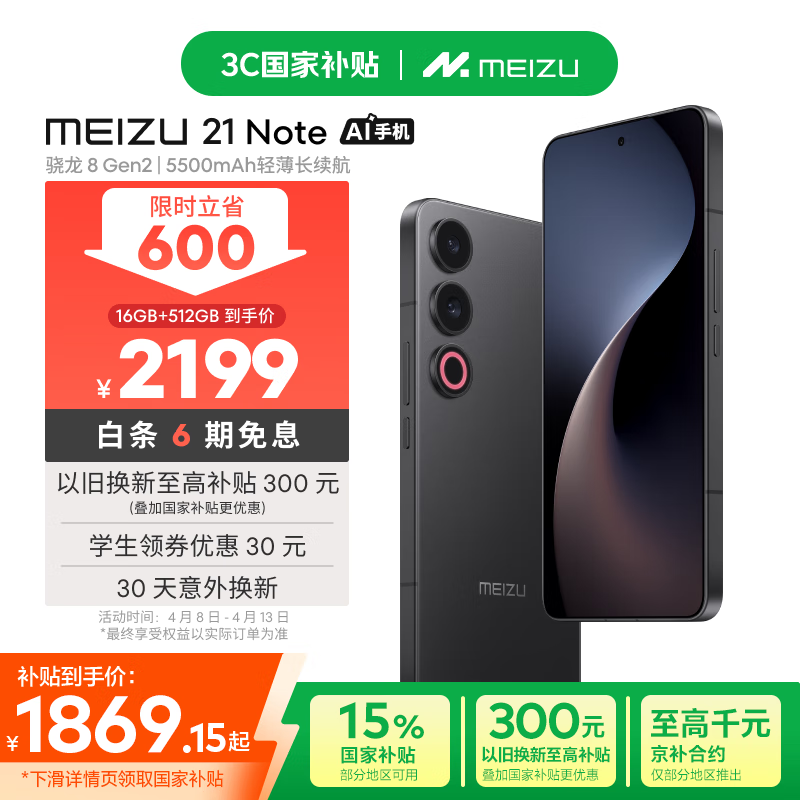 魅族21 Note 5G无界黑16GB+512GB大存储促销
