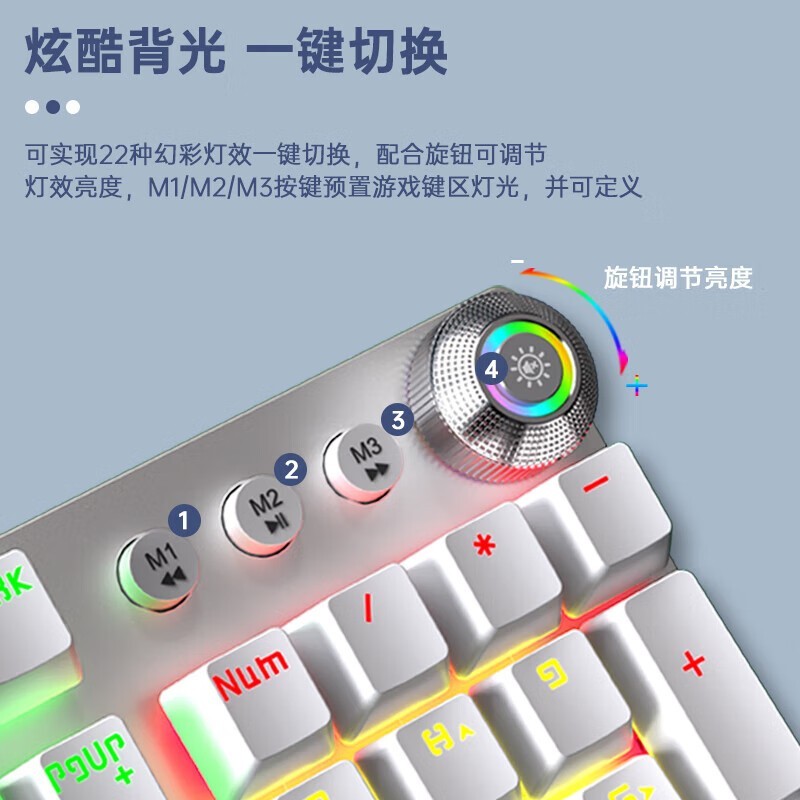 狼蛛F2088机械键盘侧刻渐变设计108键布局电竞游戏日常办公键盘