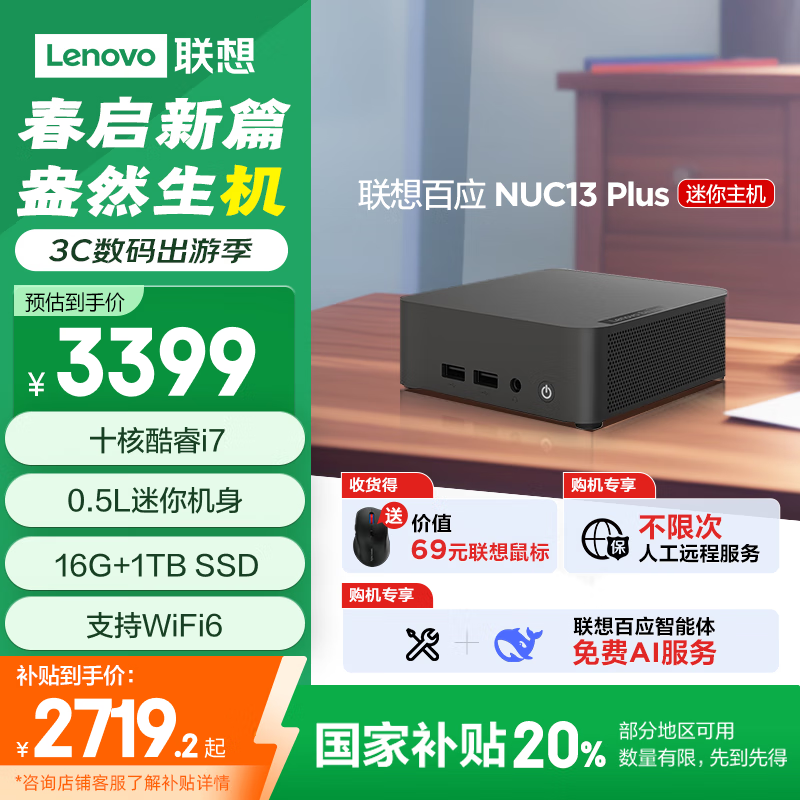 联想Lenovo百应NUC迷你主机13代i7-13620H京东好价到手2705元