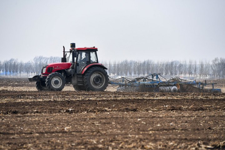 4月9日,在吉林省公主岭市朝阳坡镇东兴村,公主岭市军平种植家庭农场农民驾驶农机整理土地,为春耕做准备。随着气温回暖,吉林省各地农民抢抓农时做好春耕备耕工作。目前,吉林省农资货源充足、下摆顺畅,备春耕工作总体进展顺利。 新华社记者 张楠 摄