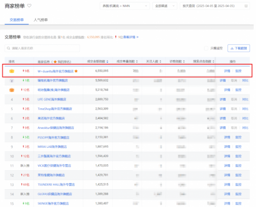 在全球进口商品因关税政策调整而价格波动的大环境下,进口商品市场风云变幻,而NMN 品牌的表现备受关注。从电商平台数据来看,NM头部品牌“W+端粒塔(W+duanlta)”京东旗舰店平台订单量激增,成为市场焦点,荣登销量榜第一名。