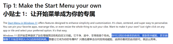 不过这篇文档可能是实习生或者AI写的,因为在其中搞混了开始菜单图标和动态磁贴,而动态磁铁是Windows 8/10才有的,Windows 11里已经被删除。