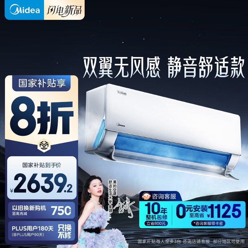 美的大1匹无风感空调,京东到手价2468元