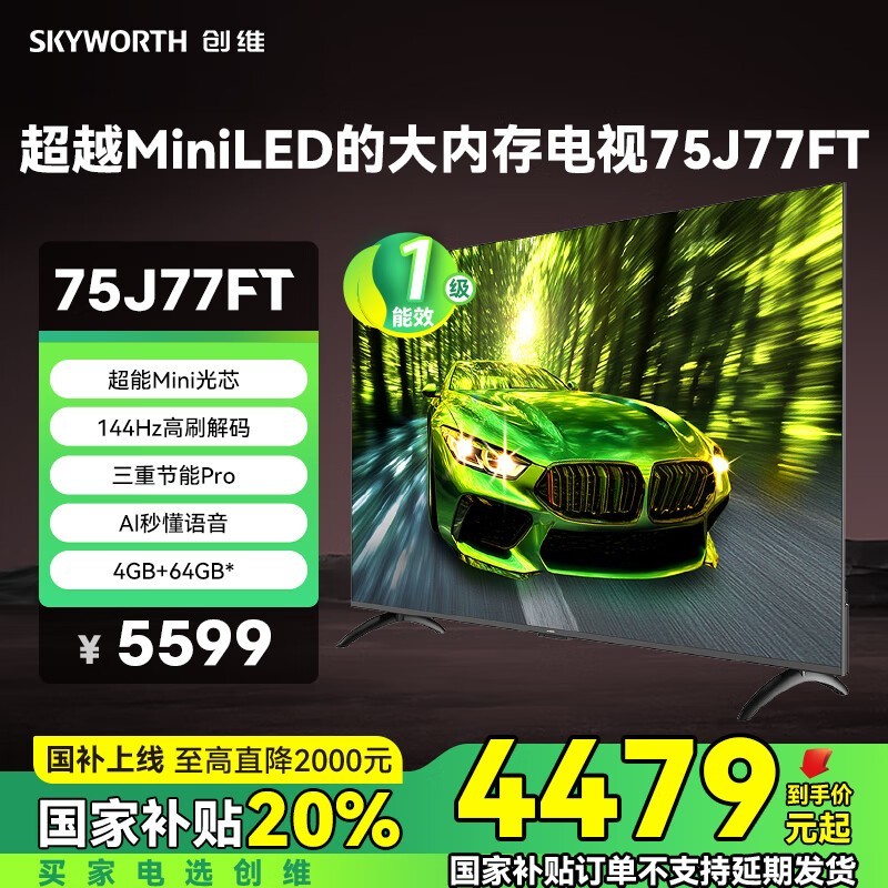 创维75J77FT电视,国补20%后4479元
