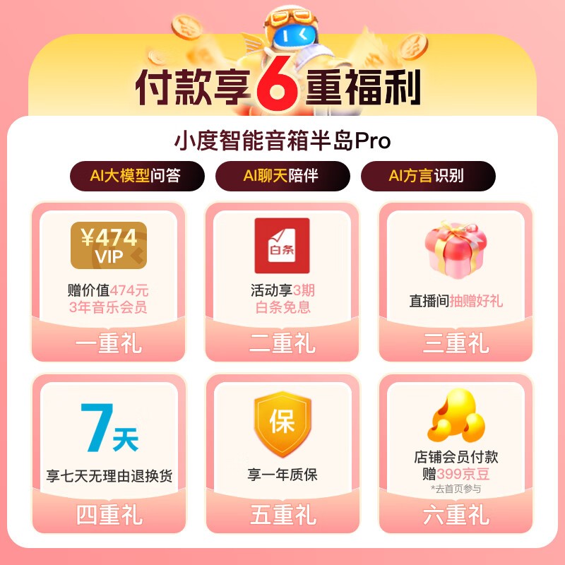 小度添添智能音箱半岛Pro京东特惠616元到手