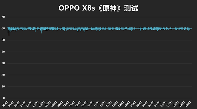 《原神》开启60fps模式,画质开到能开启的最高画质,并且在须弥城内不断移动,以模拟游戏情况。经过半个小时的测试,可以看到OPPO Find X8s同样表现出色,平均帧率59.8,游戏抖动率0.5,流畅度99.4,潮汐引擎加持下的天玑9400+,游戏体验确实更加游刃有余。