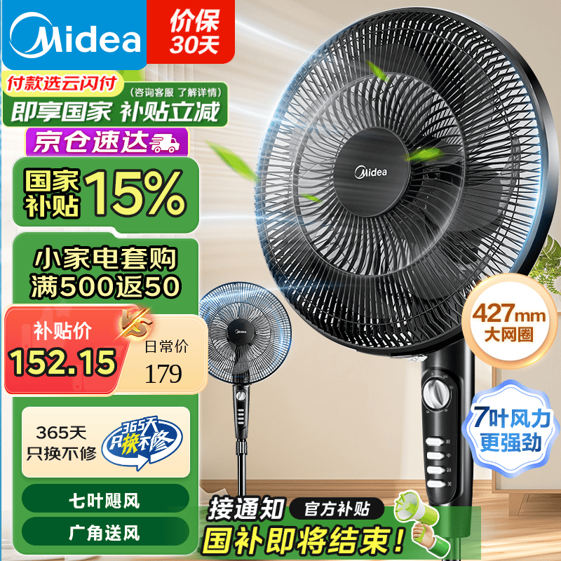 美的SAF35MA落地扇黑色超值优惠低至135元