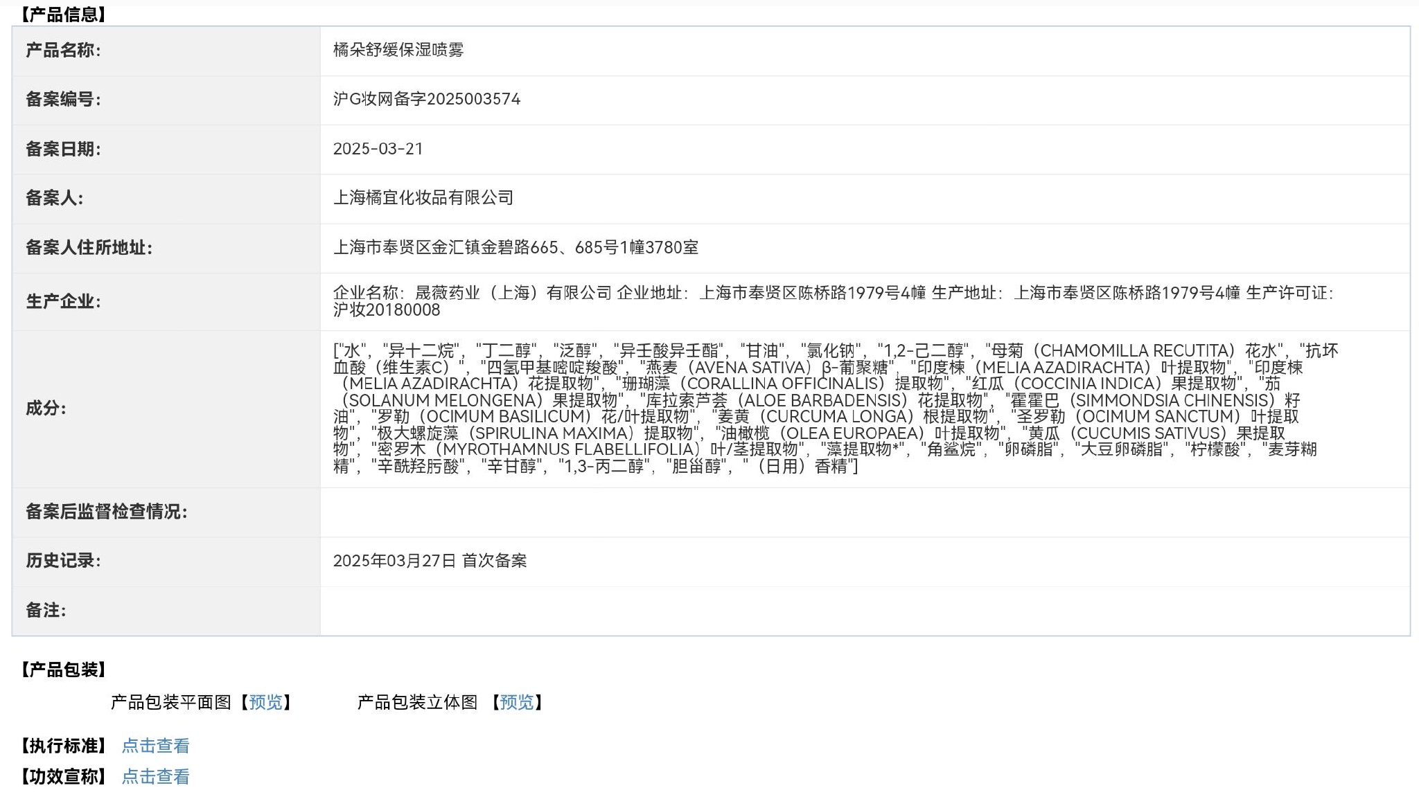 【亿邦原创】日前,彩妆品牌橘朵备案了一款护肤品“橘朵舒缓保湿喷雾”。国产普通化妆品备案信息显示,该产品具有降温、保湿、舒缓、修护的功效。