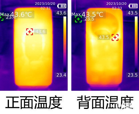 在负载更大的《崩铁》跑图中,59.7帧的平均帧率,依旧是满帧表现。正面43.6度和背面43.5度表面温度,触感能感觉到热,但没有不舒适感。考虑到场景的高负载,这个发热量完全可以接受。