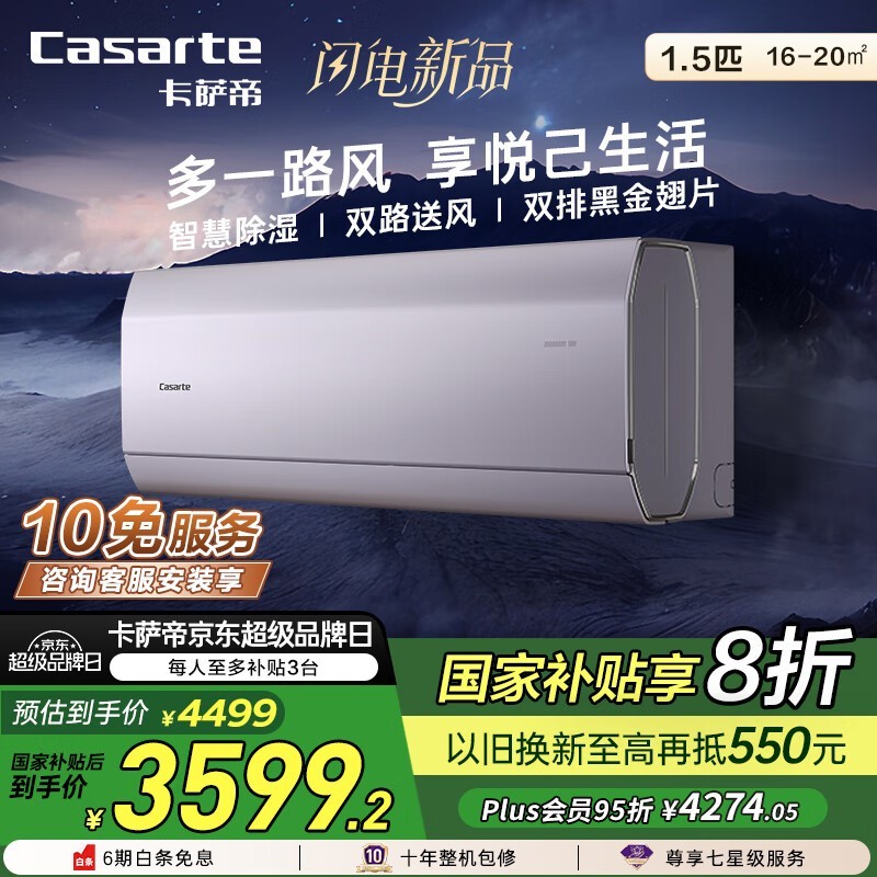 卡萨帝星悦尊享版空调1.5匹一级能效挂机双路送风智慧除湿