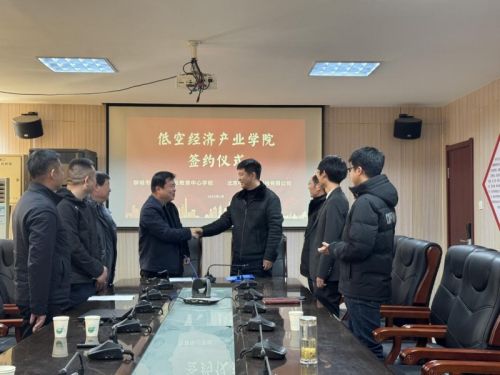 图三:我校无人机操控与维护专业获批“山东省示范性品牌专业”为有效破解职业教育与产业需求“两张皮”的难题,茌平区职业教育中心学校积极探寻多元合作路径。学校与北京中科浩电科技有限公司携手共建“低空经济产业学院”,双方在课程体系共建、实训基地打造、师资互聘以及联合研发等方面展开了深入沟通与交流,为区域低空经济发展培养无人机应用技术领域的专业人才、推动无人机技术的创新与进步筑牢了根基。