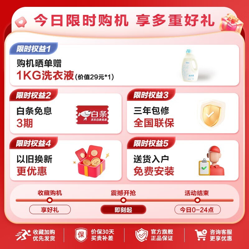 美的洗衣机MG100VC36T 10公斤仅需924元