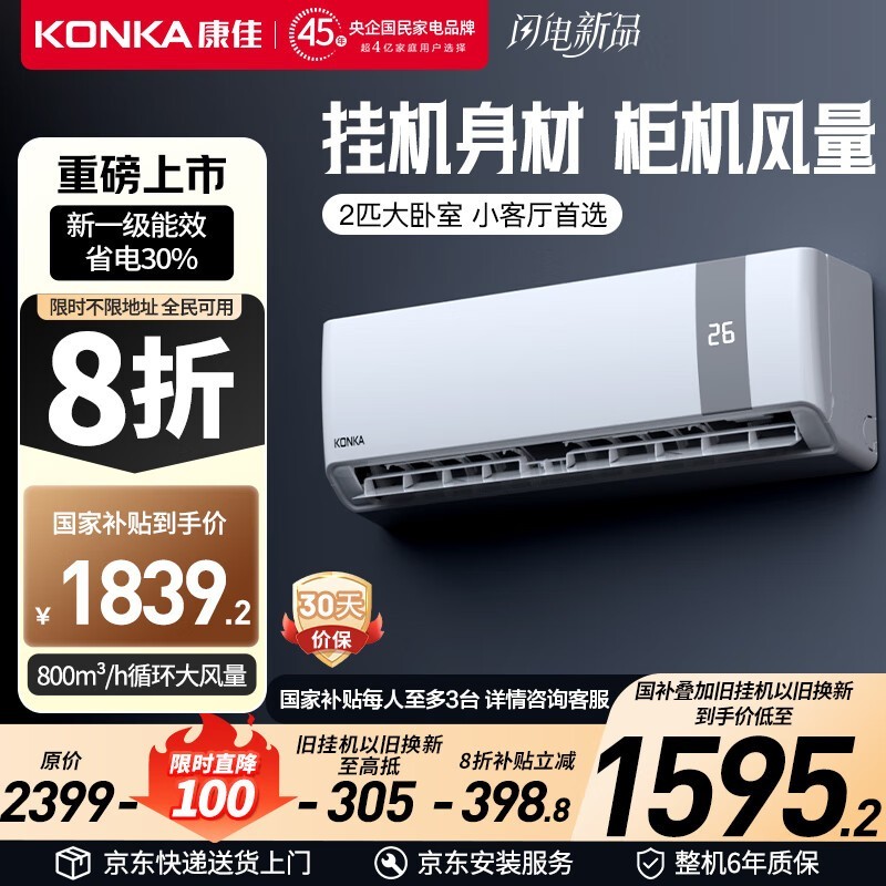 康佳2匹挂机KFR - 50GW/V5GB10优惠价1795元