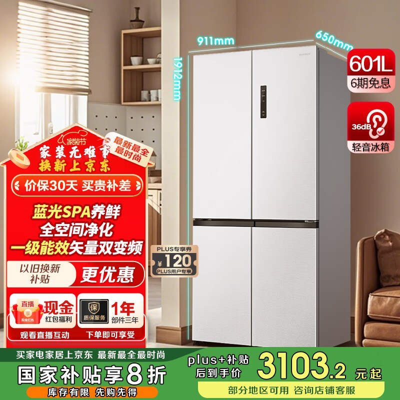 容声蓝光养鲜冰箱601L风冷无霜十字对开促销