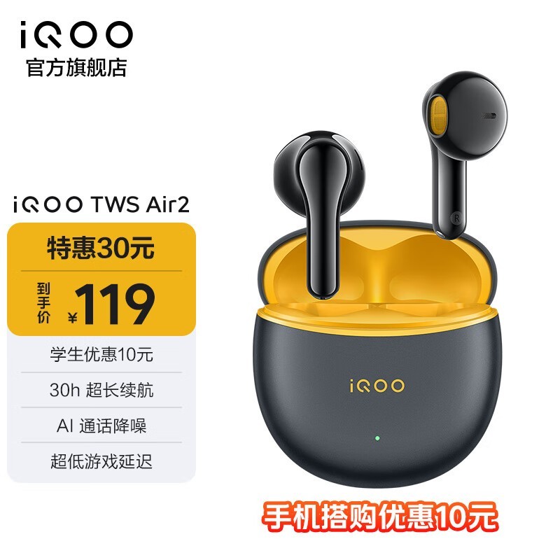 vivo 2极焰黄耳机,领券109元超值入手