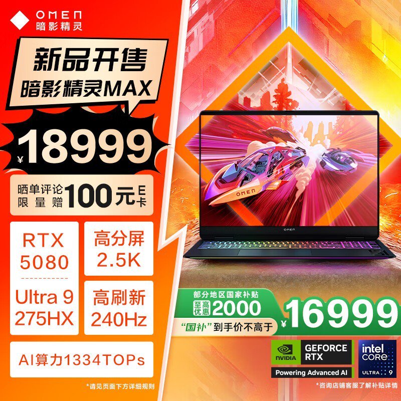 惠普暗影精灵MAX游戏本京东优惠价16904元