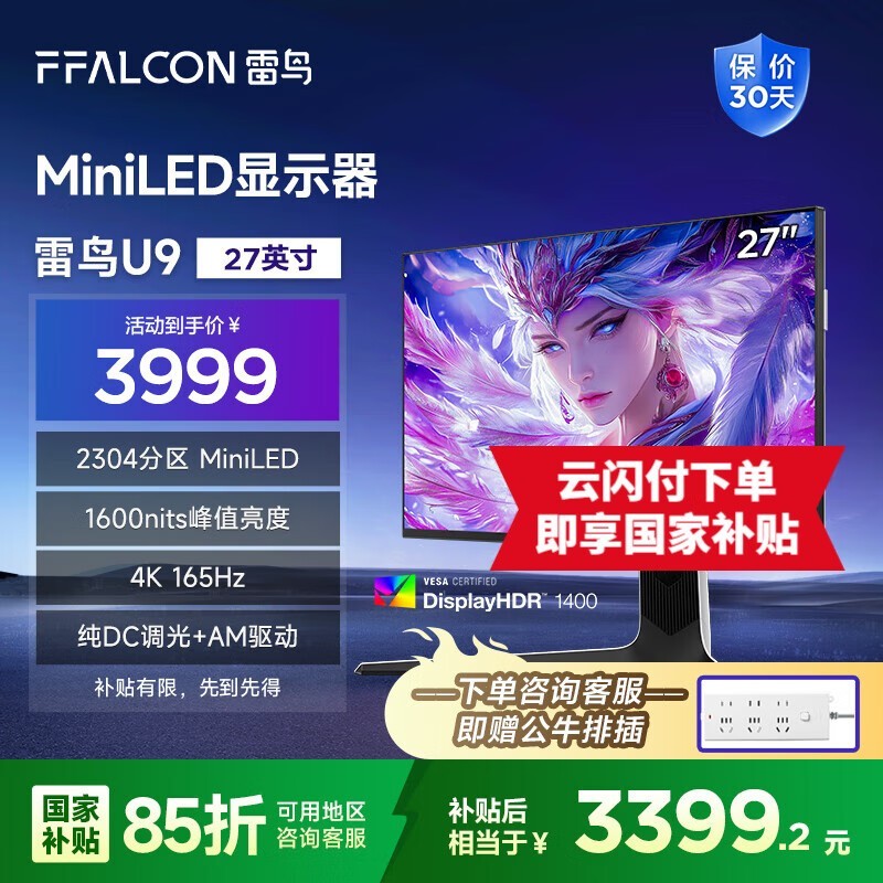 雷鸟U9 27英寸4K电竞显示器京东优惠价3372元