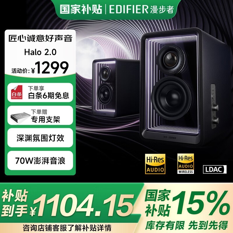 漫步者Halo 2.0音箱京东促销,到手价1274元