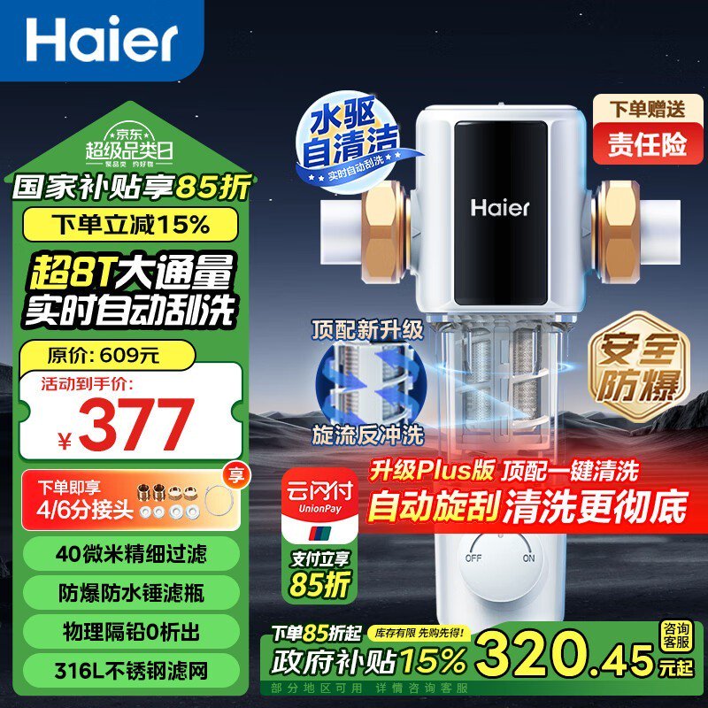海尔Haier HP60-XAw11前置过滤器京东特惠到手仅397元