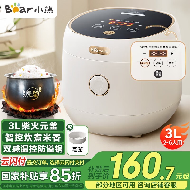 小熊电饭煲DFB-C30L3香喷喷3升大容量京东127元包邮