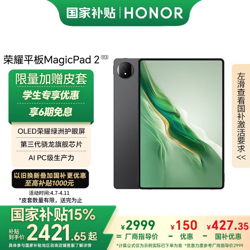 荣耀MagicPad2平板京东国补8.5折优惠