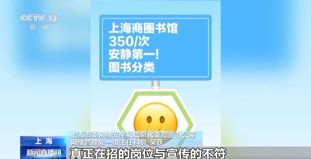 上海市委网络安全和信息化委员会办公室网络管理处一级主任科员 吴跃:其实这些有偿兼职信息,实际上是通过标注高薪信息将网民引流到第三方平台,并逐步诱导不明真相的网民购买求职网站的会员,等消费者充值之后才发现,真正在招的岗位与宣传的不符。