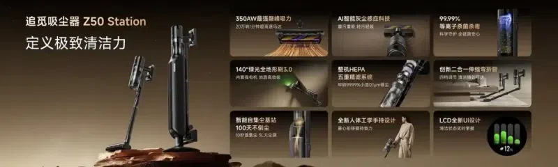 作为全球高端消费电子及智能制造领域的领军企业,追觅科技持续深耕高速数字马达、智能算法、运动控制和流体力学等技术领域。即将于5月上市的追觅Z50 Station吸尘器,凭借全球首创20万转高速数字马达技术,不仅树立了吸尘器行业性能新标杆,更推动了高速数字马达技术的产业化普及,充分彰显了追觅科技"技术领先者"的硬核实力。追觅科技将以创新为引擎,持续引领全球清洁电器行业迈向智能化、高效化的新时代。