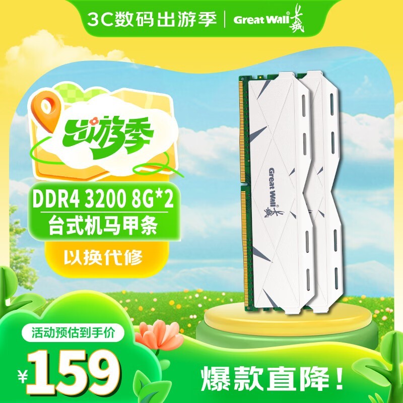 长城16GB内存条DDR43200台式机马甲条促销价154元