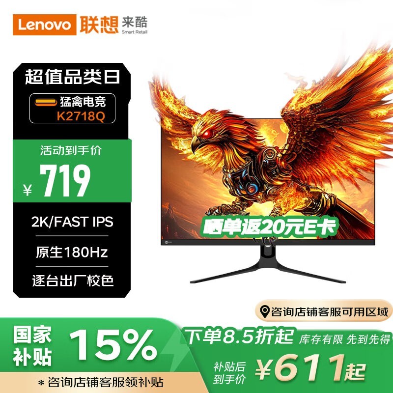 来酷27英寸2K电竞显示器猛禽K2718Q京东好价607元