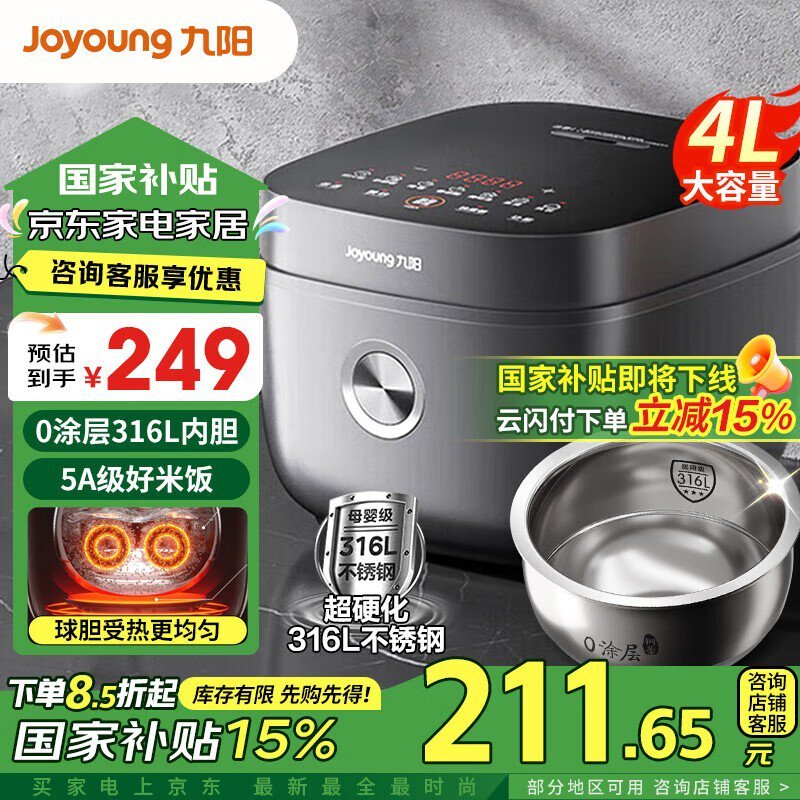 九阳电饭煲F-40F316L不锈钢内胆多功能焖煮