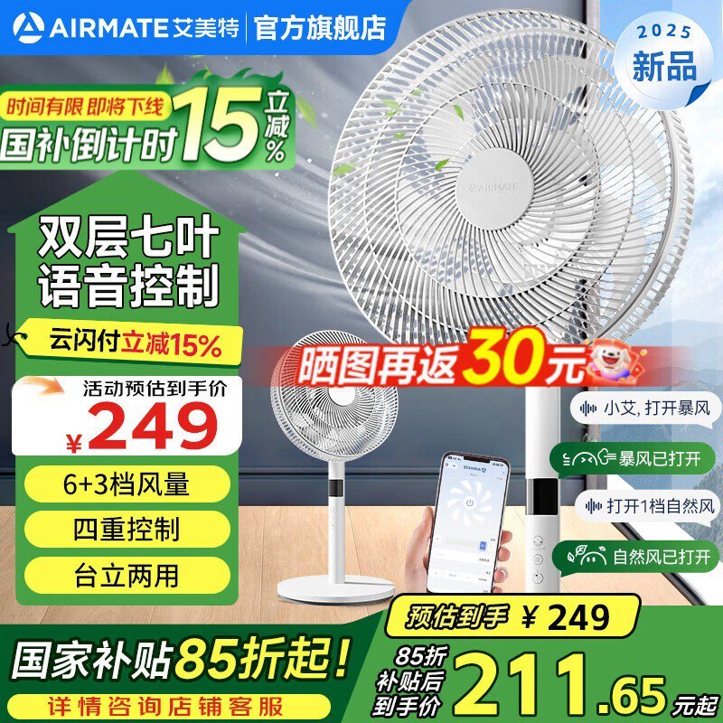 艾美特电风扇家用七叶大风量落地扇客厅卧室静音可调