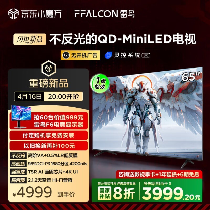 雷鸟65英寸鹤7Pro电视京东促销到手价3903元