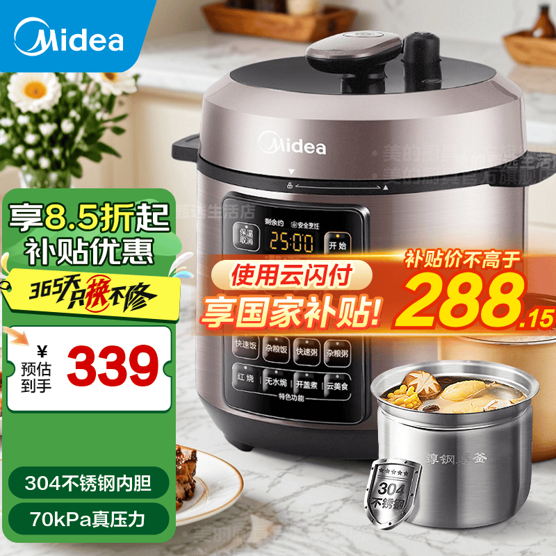 美的MY-E5924G电压力锅5L大容量智能操作仅339元抢