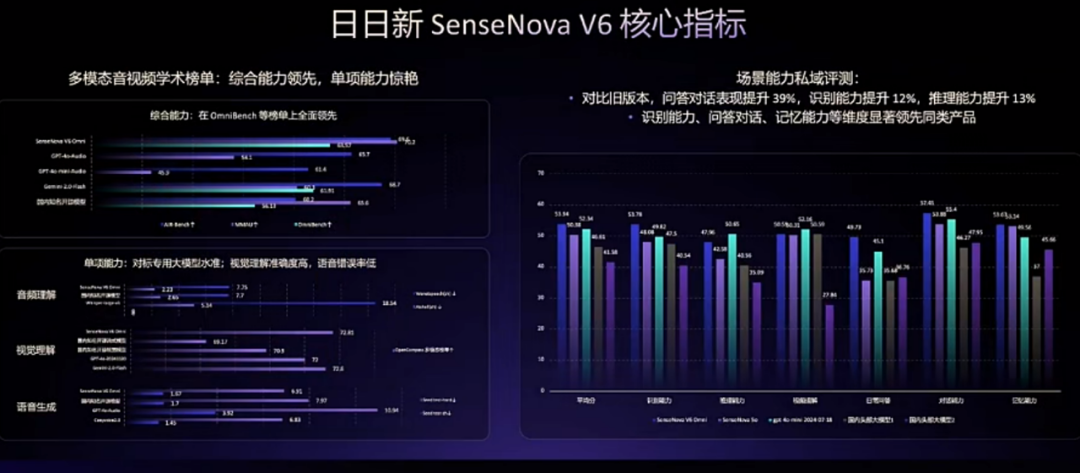 此外,日日新 V6 在音频理解、视觉理解等基准上也处于领先水平。