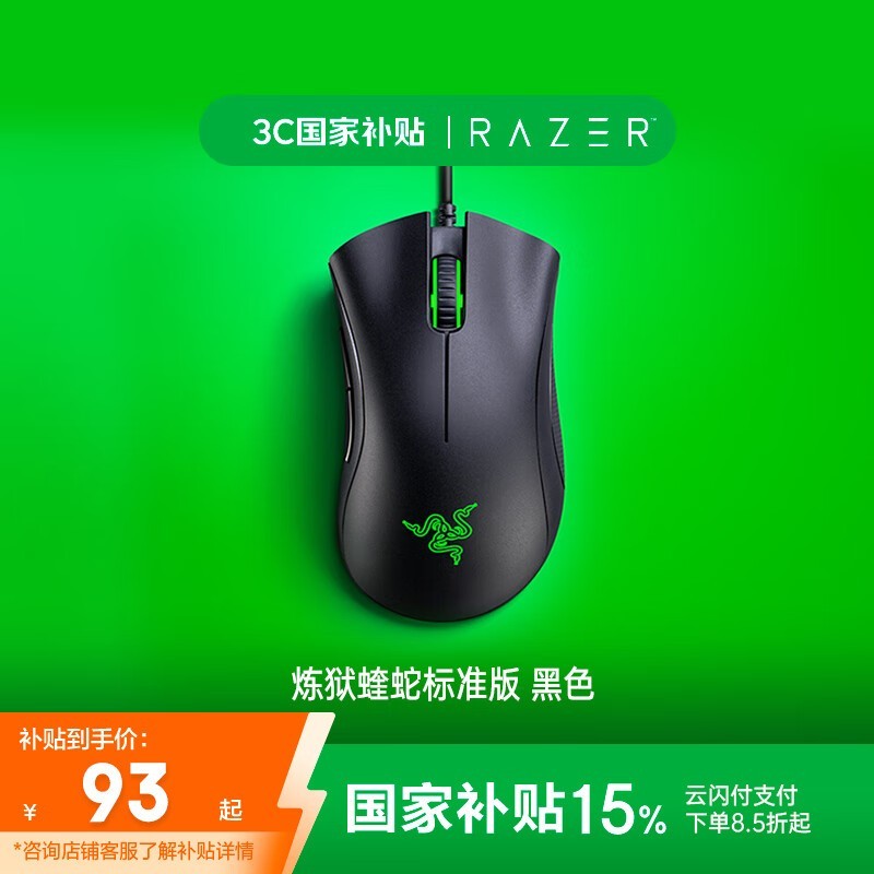 雷蛇蝰蛇标准版有线鼠标6400DPI游戏设计两用京东74.4元到手