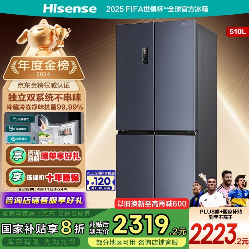 海信食神系列510L风冷十字对开门冰箱京东好价2205元到手