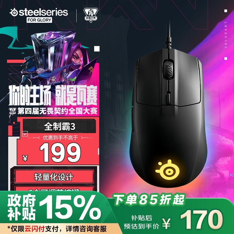 赛睿Rival 3鼠标京东优惠,原价164现134.3