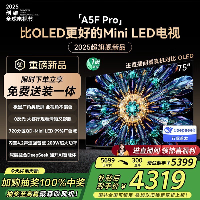 创维黑骑士75A5F Pro Mini LED电视震撼发布