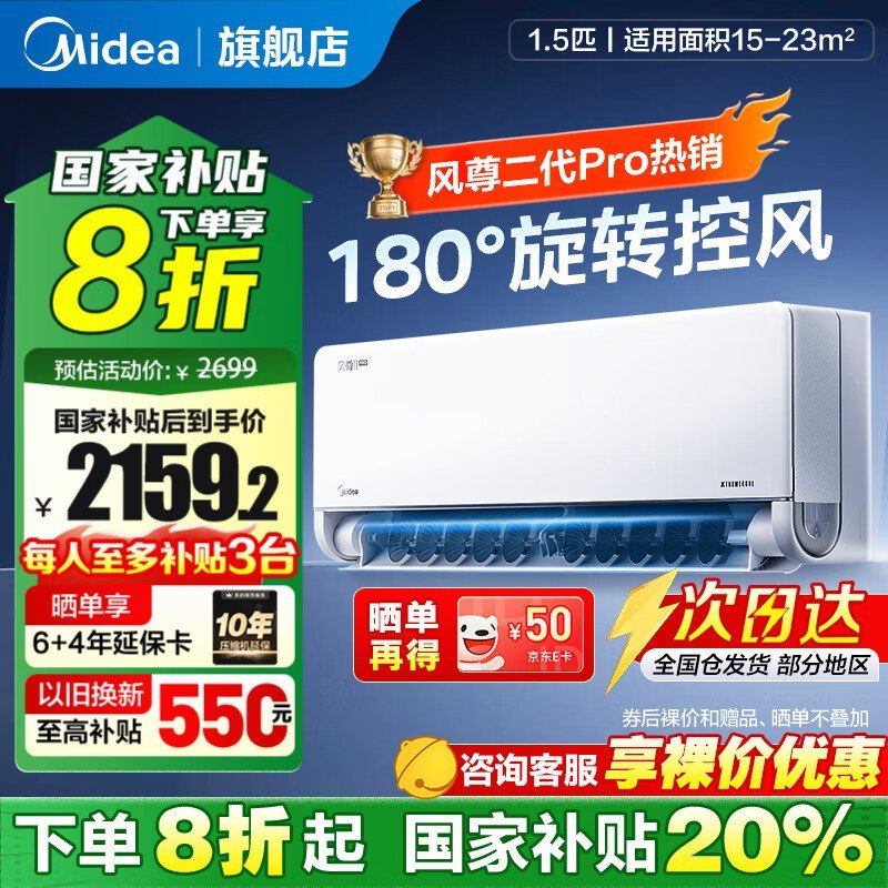 美的风尊二代1匹空调京东到手价1919元