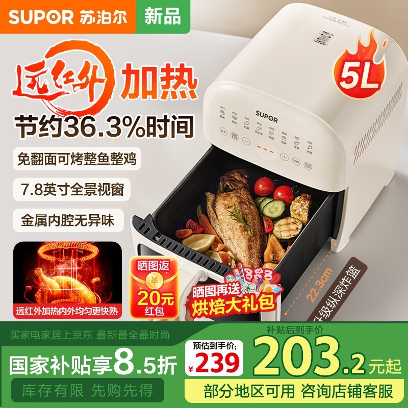 苏泊尔空气炸锅KD50Y804京东特惠219元享健康低脂烹饪