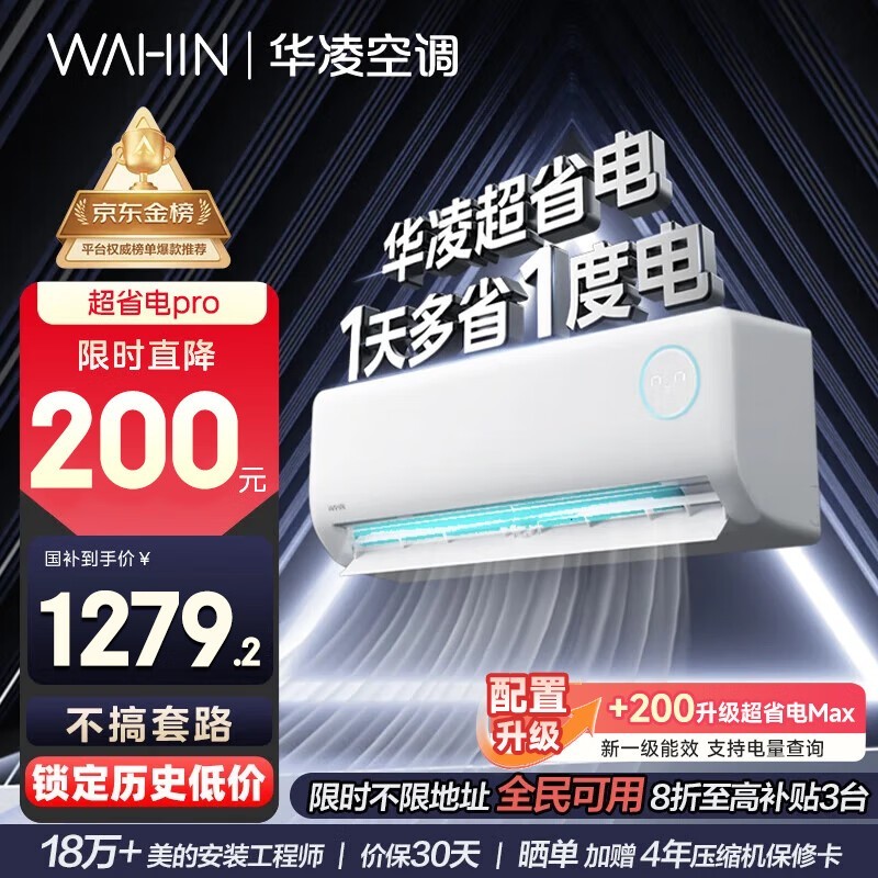 华凌空调大1.5匹新一级能效变频冷暖挂机