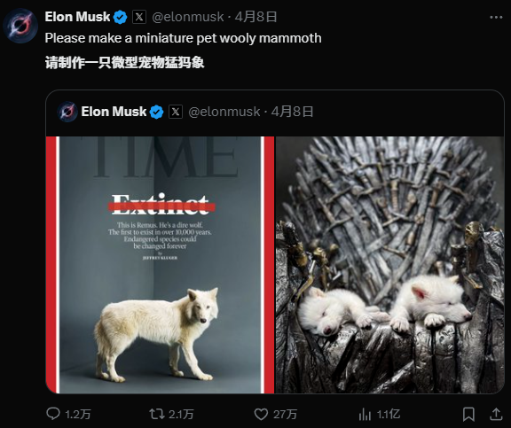 甚至马斯克都在第一时间发文,并表示想“接一个微形宠物猛犸象”。